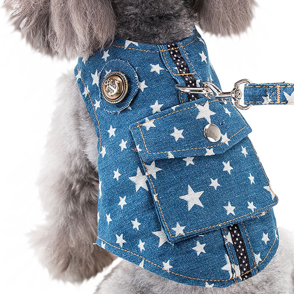 とてもファッションなデニムハーネスです。胸全体を覆う事で体に負担がかかりません。首を締め付けないので、喉が弱いわんちゃんにおすすめです。着脱はとっても簡単です.病院への通院やちょっとしたお出かけにも便利です